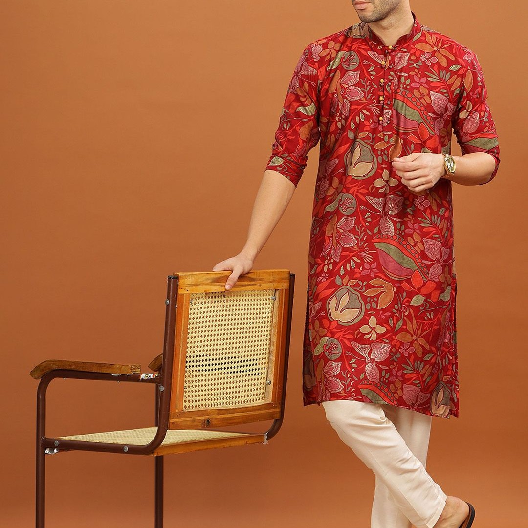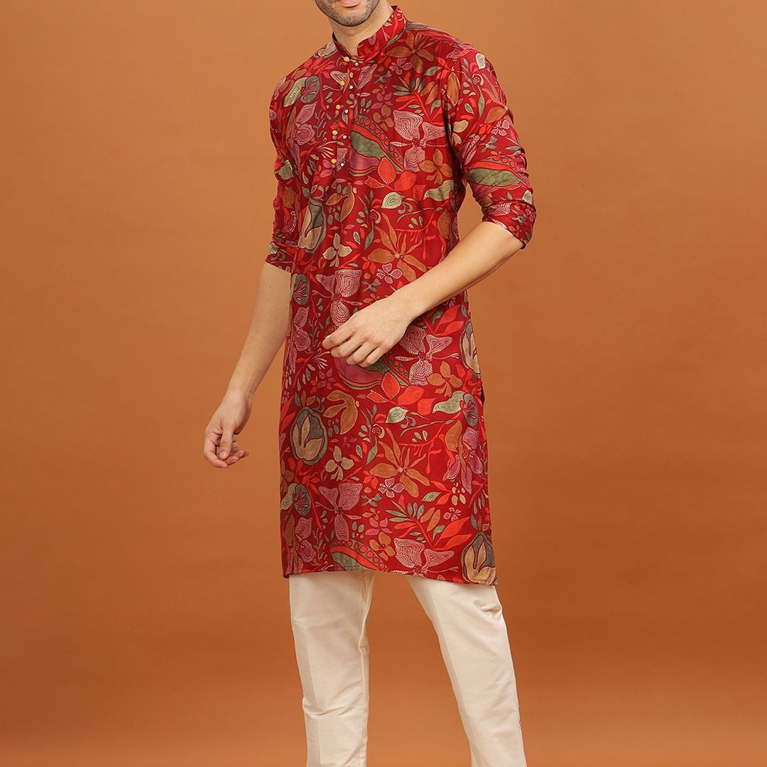 Anouk Mandarin Collar Floral Printed Straight Kurta