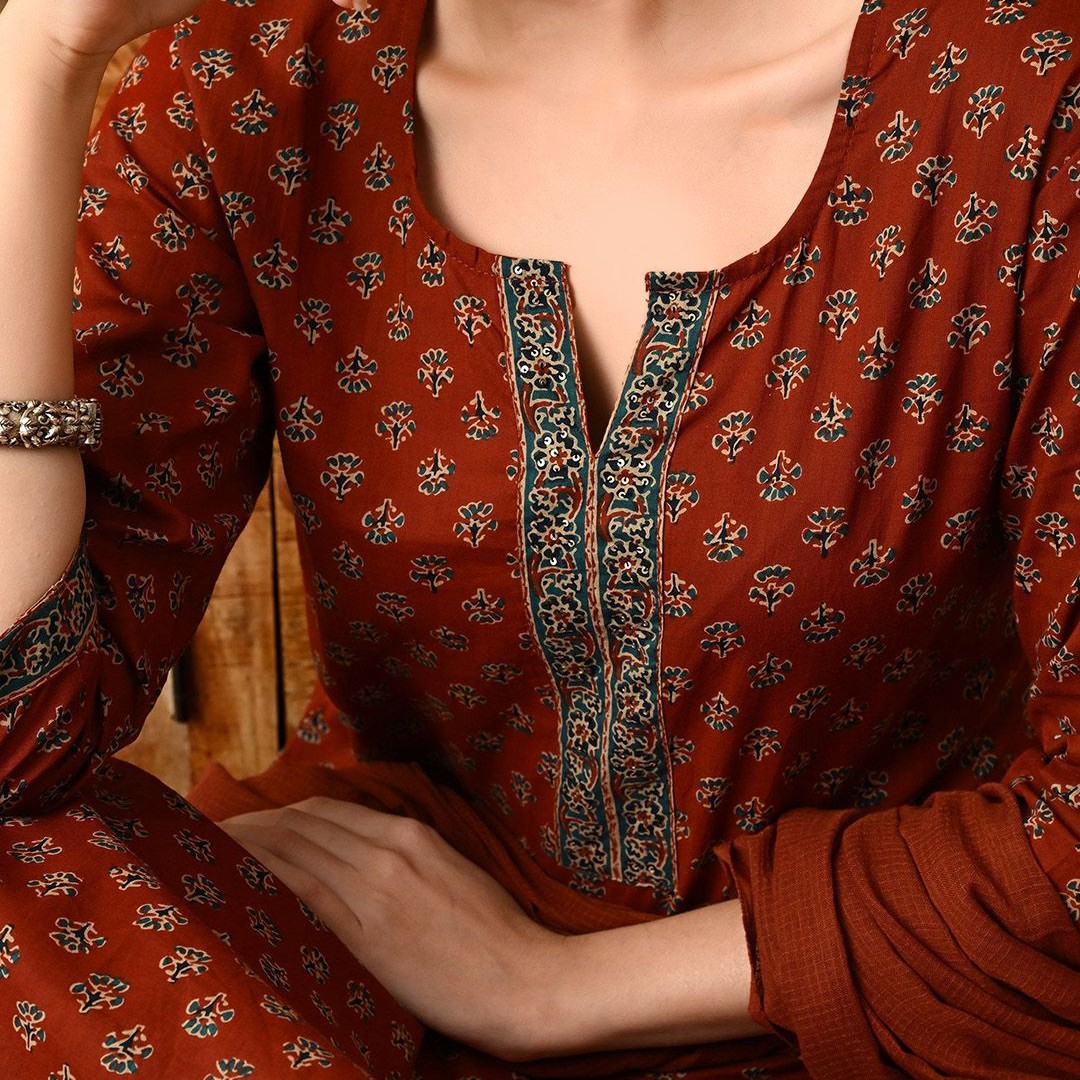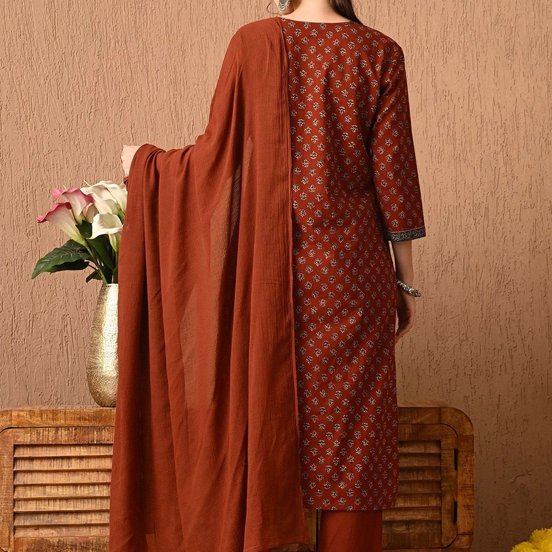 Anouk Women Floral Printed Regular Pure Cotton Kurta with Trousers & With Dupatta