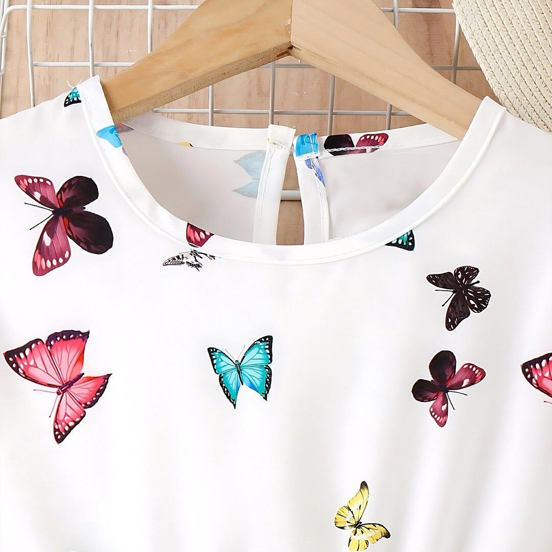 BAESD Girls Conversational Print Round Neck Puff Sleeves Cotton Fit & Flare Dress