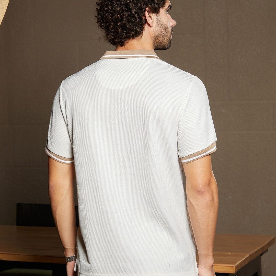 Campus Sutra Men Self Design Polo Collar Cotton T-shirt