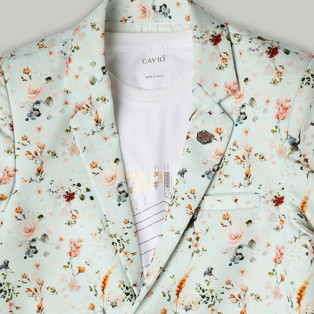 CAVIO Boys Printed Pure Cotton Notched Lapel Collar Single Breasted Blazer With T-Shirt