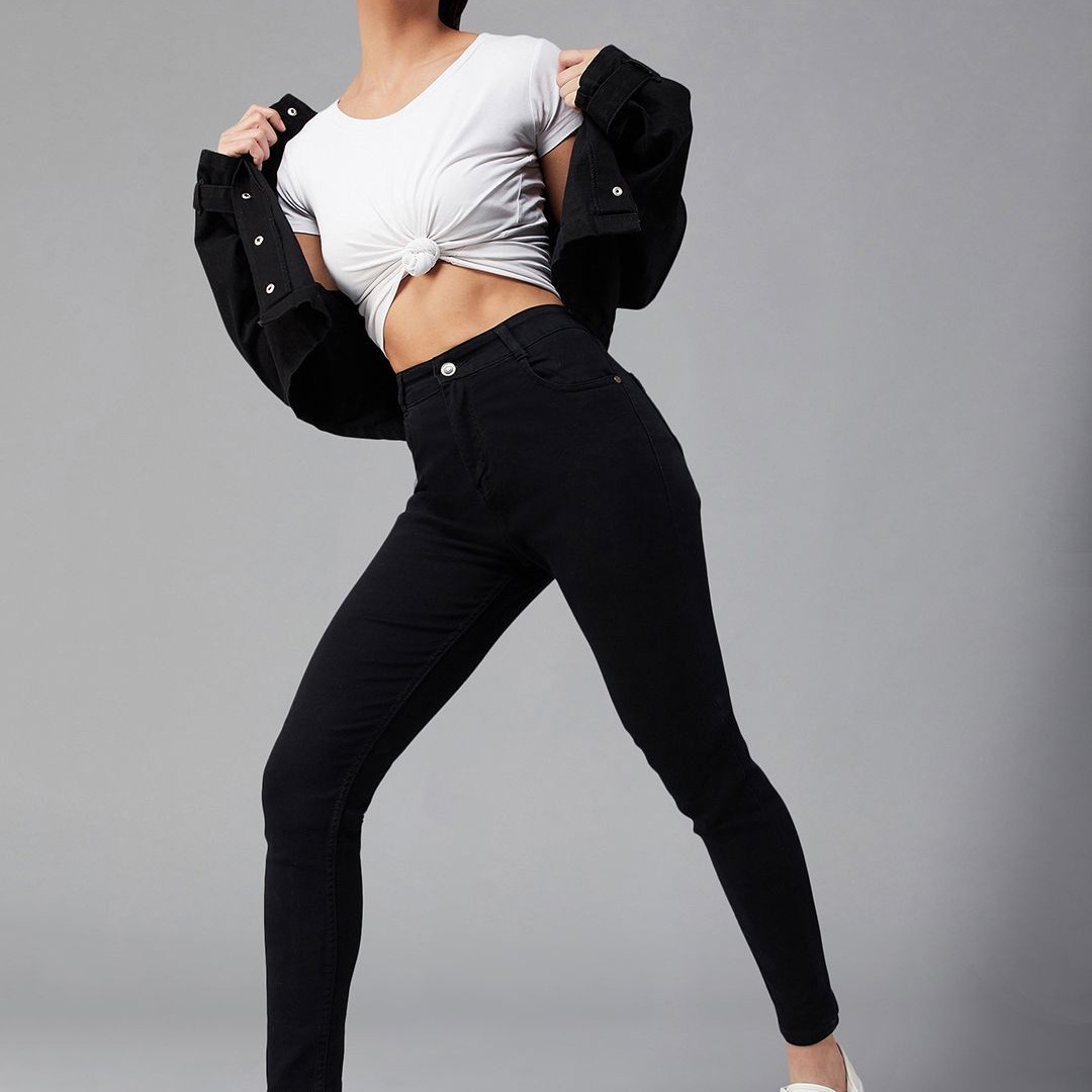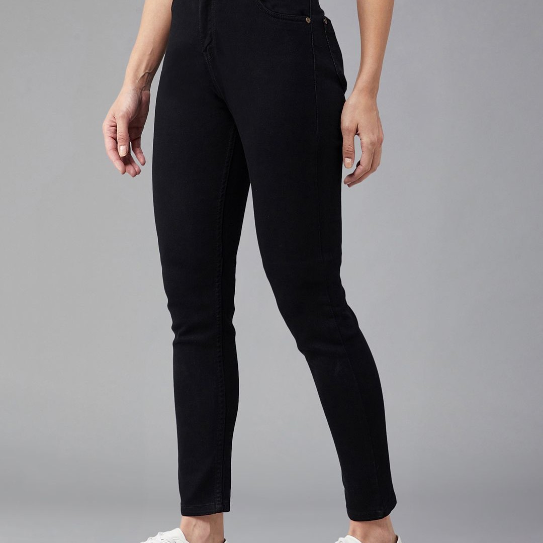 DOLCE CRUDO Women Black Skinny Fit High-Rise Stretchable Jeans
