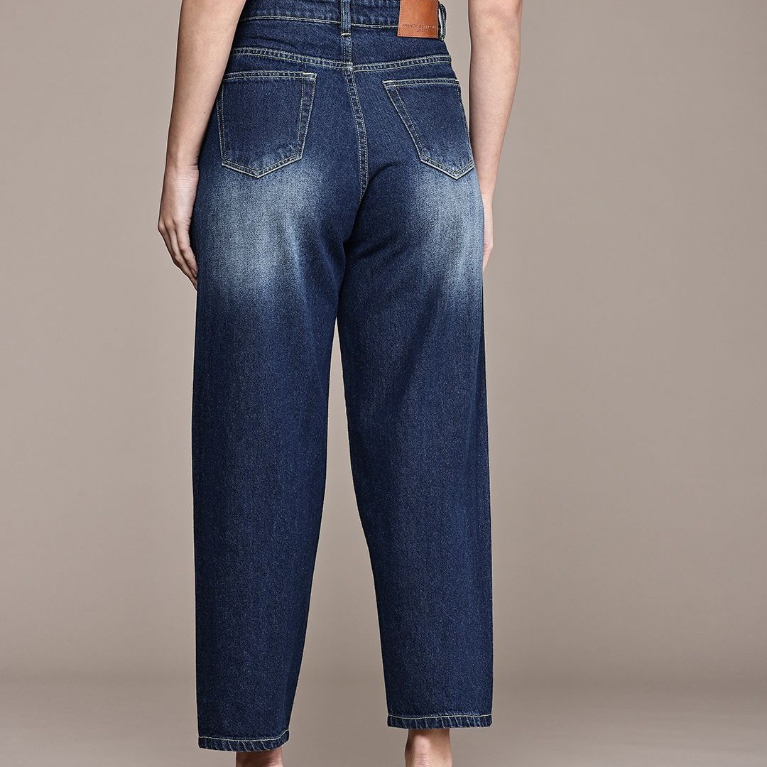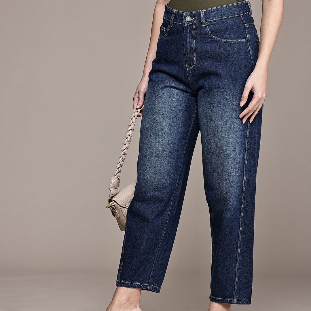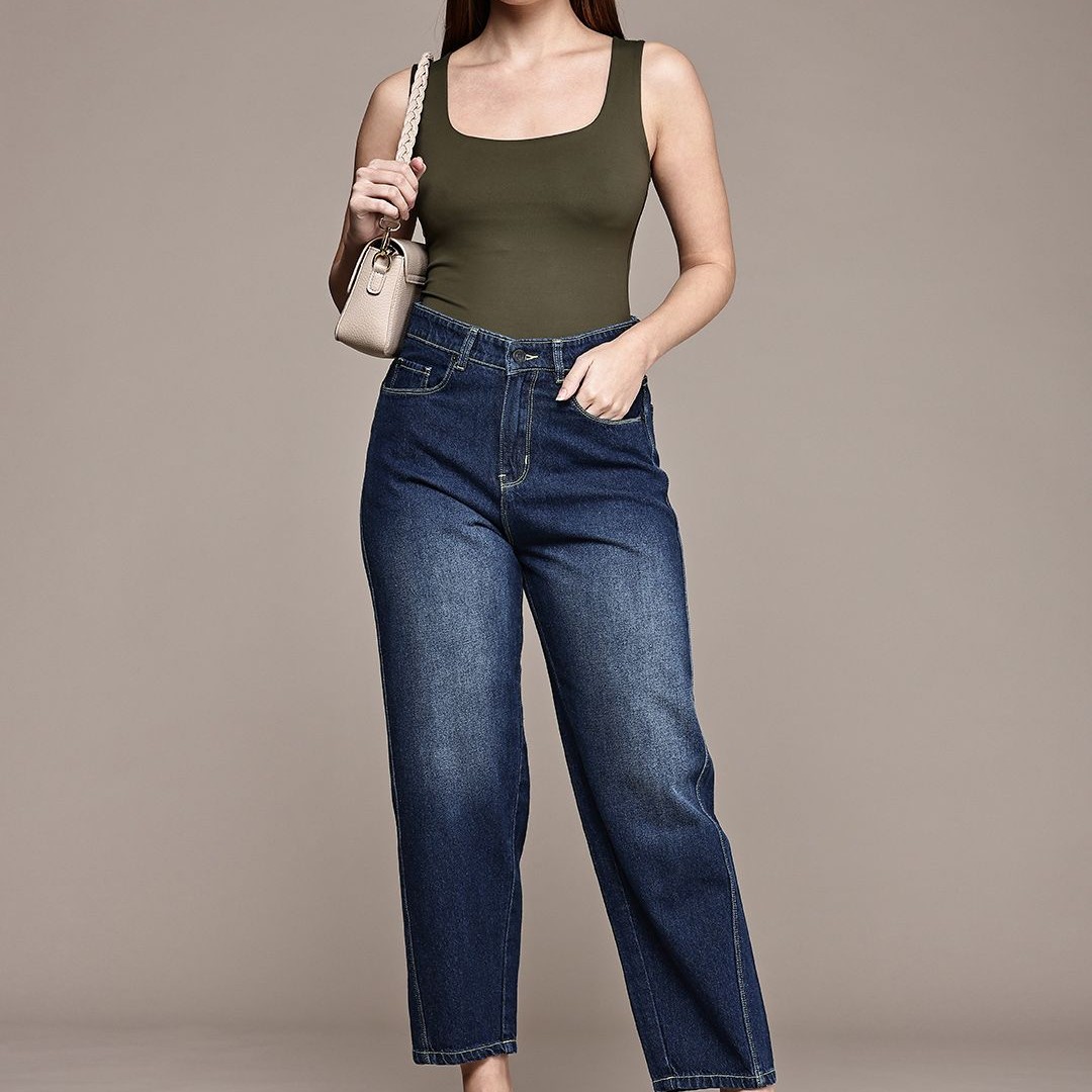 French Connection Women Pure Cotton Mom Fit High-Rise Light Fade Jeans