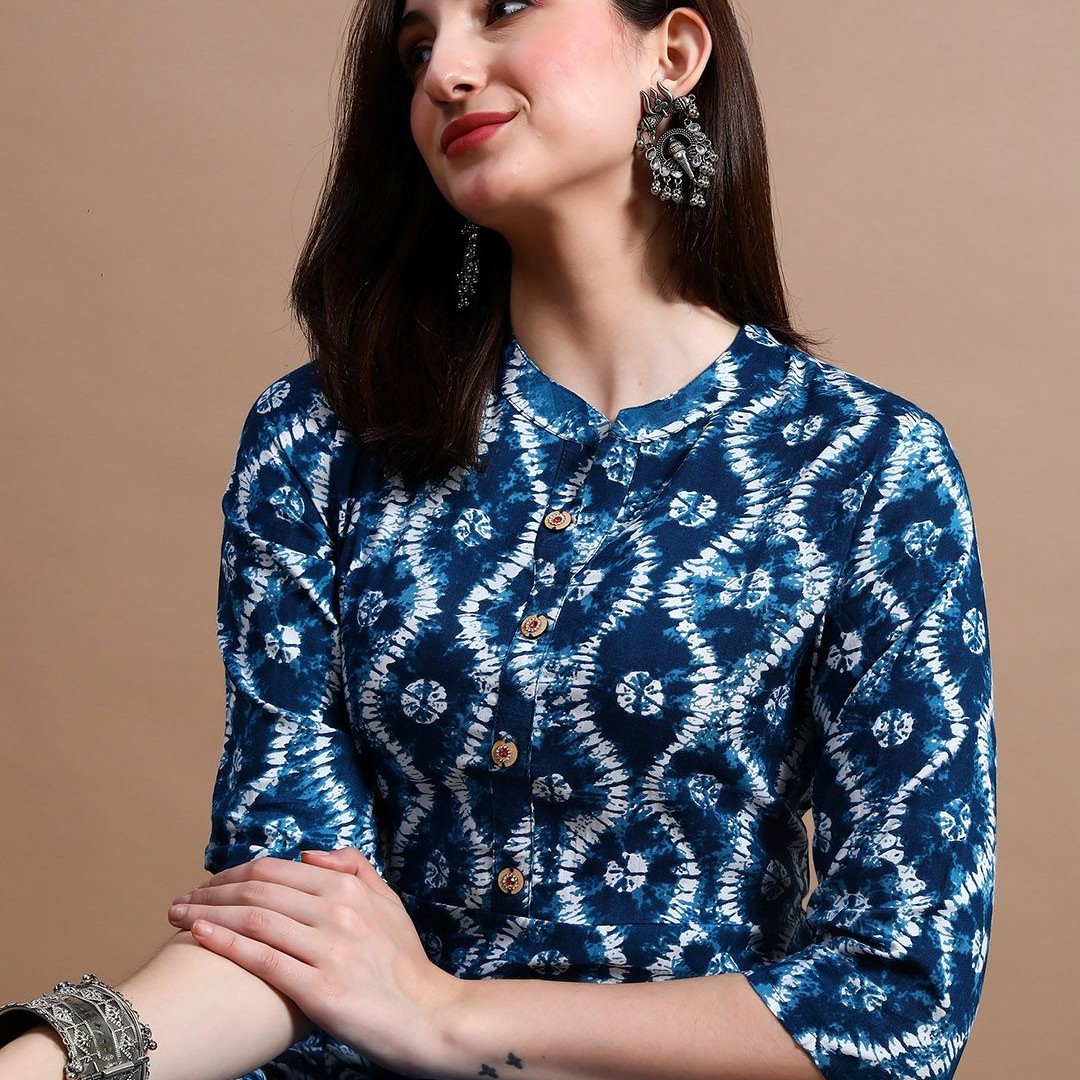 GLOWWORLD Tie & Dye Band Collar Straight Kurta