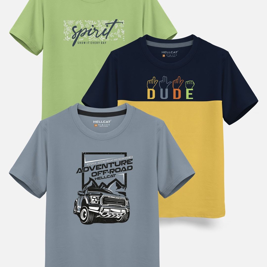 HELLCAT Boys Pack Of 3 Printed Cotton T-shirt