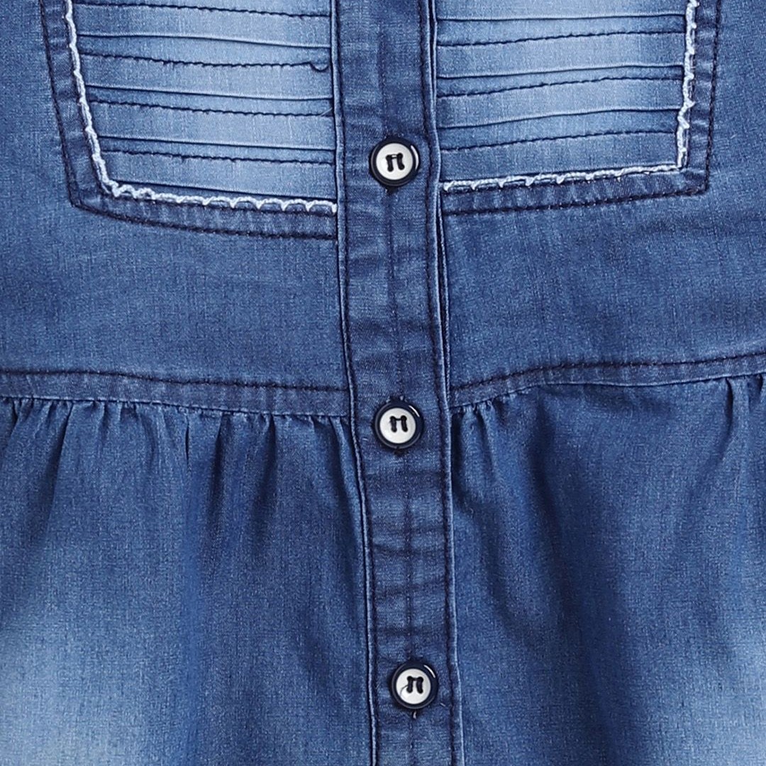 Here&Now X Denikid Girls Pure Cotton Cap Sleeves Denim A-Line Dress