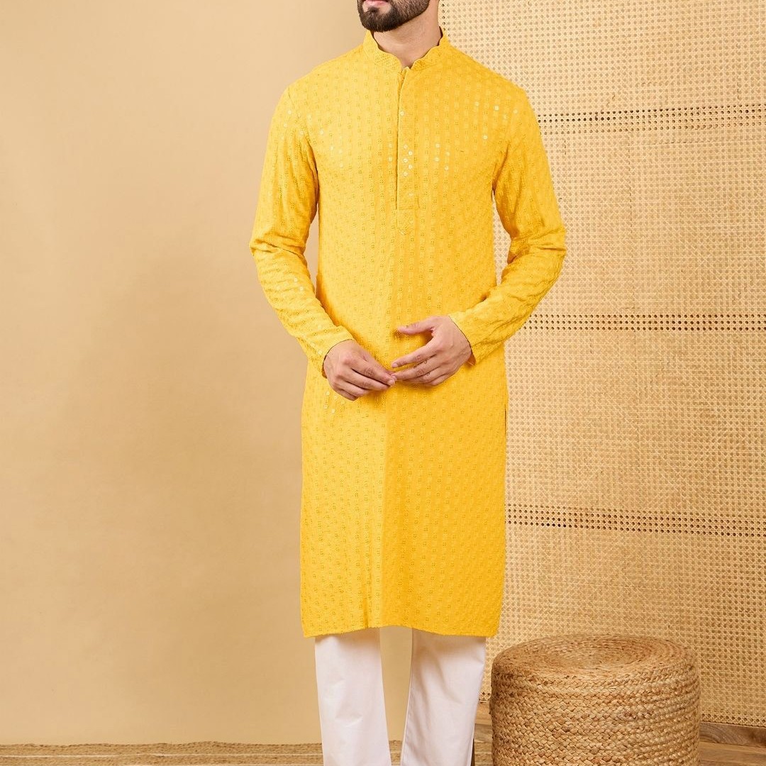 House of Pataudi Embroidered Chikankari Straight  Kurta