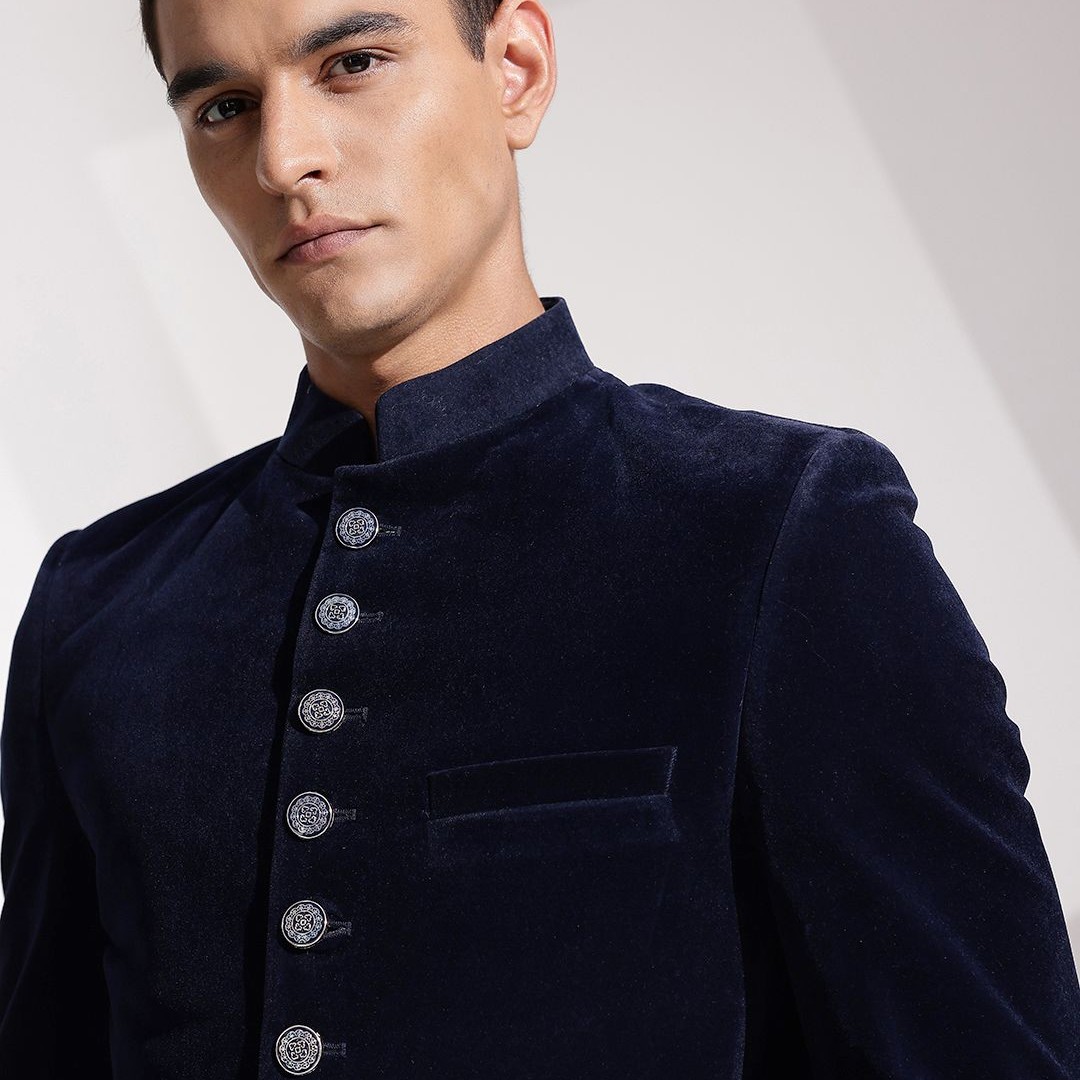 INVICTUS Mandarin Collar Slim Fit Party Bandhgala Blazers