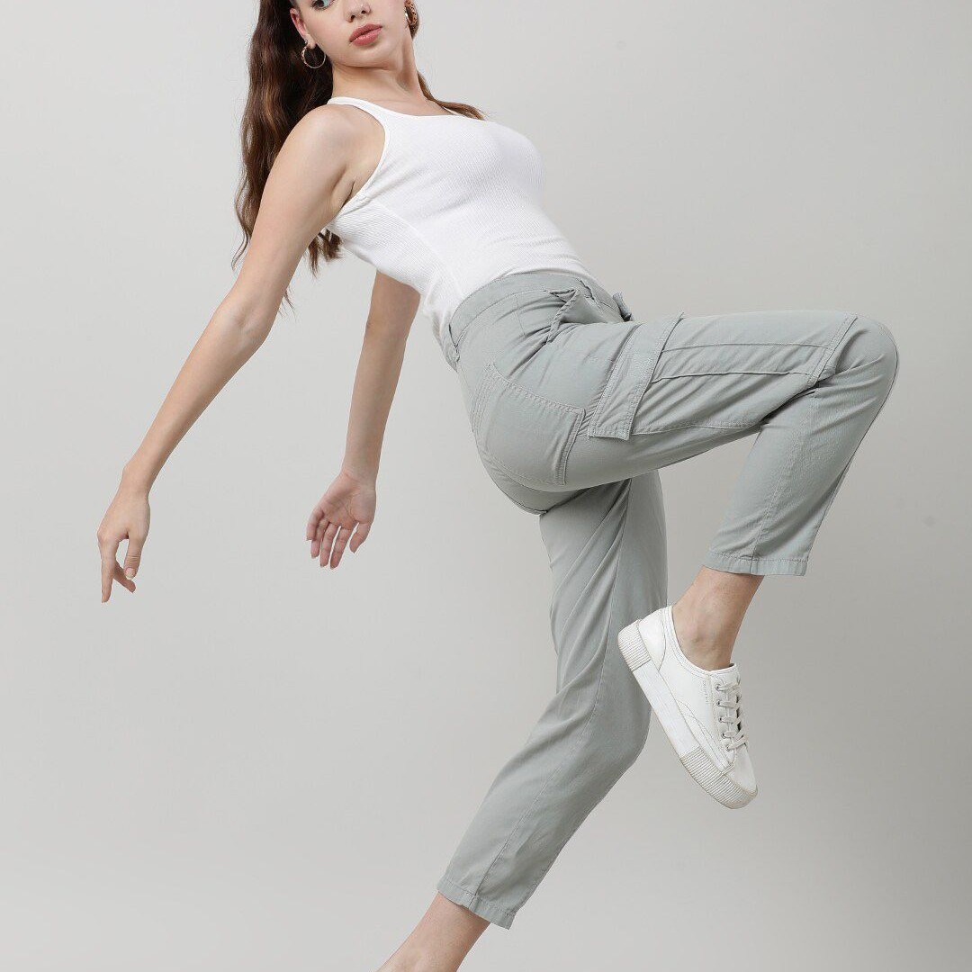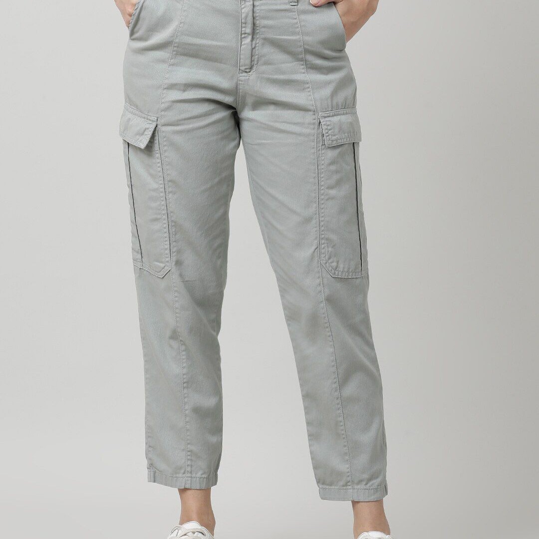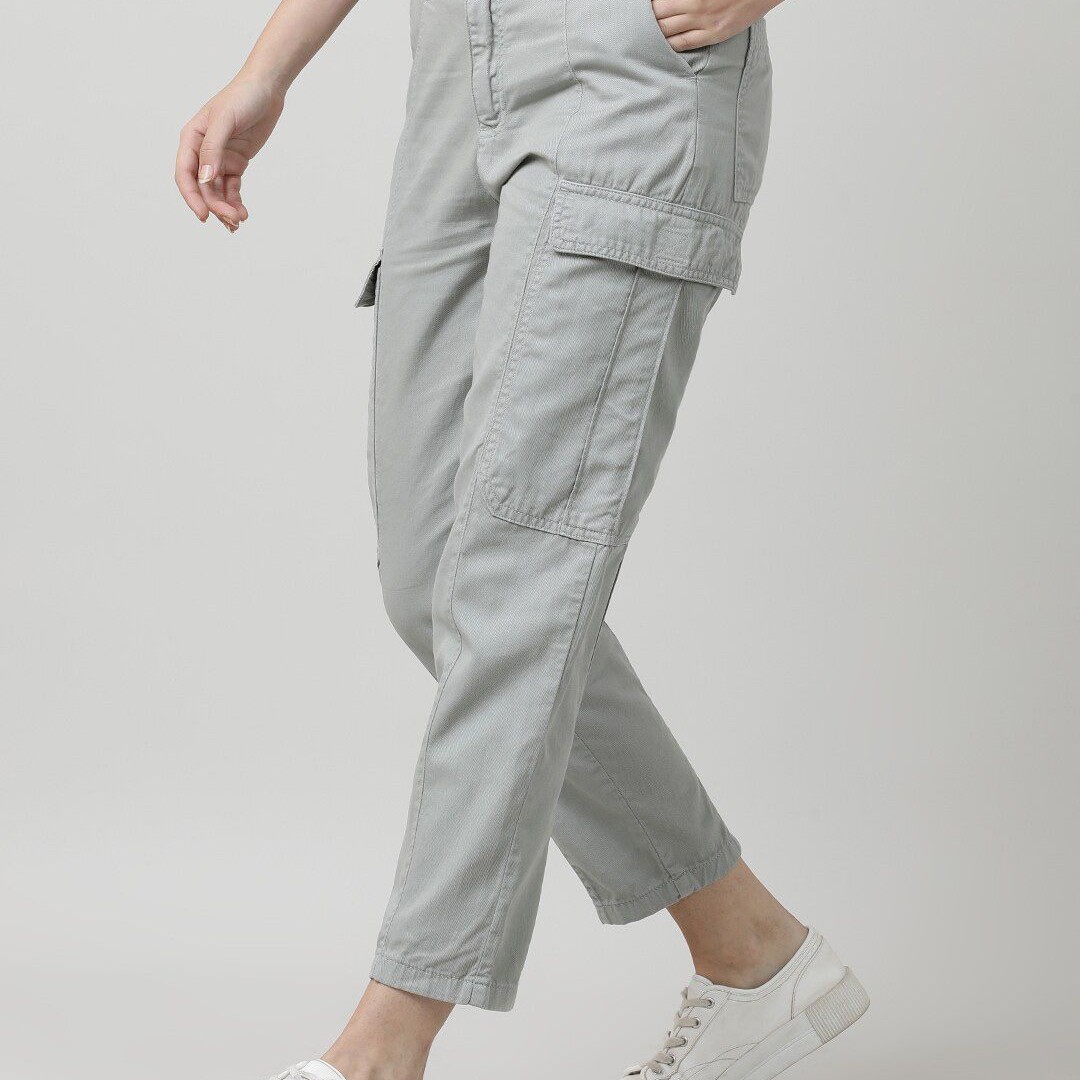 IVOC Women Grey Mid-Rise Cotton Cargos Trousers
