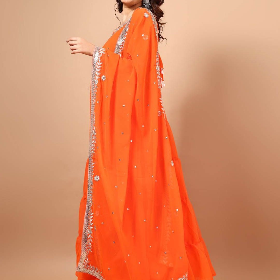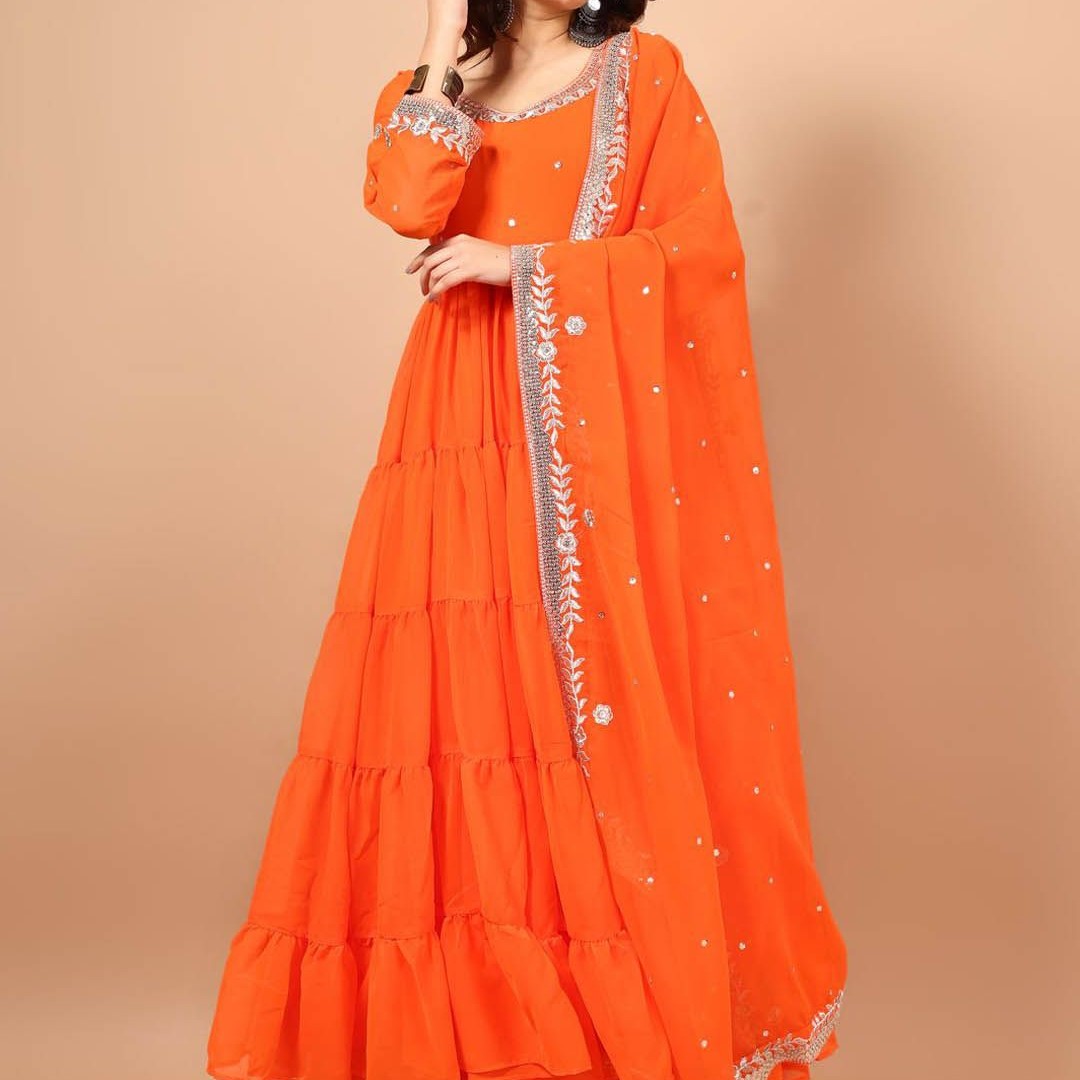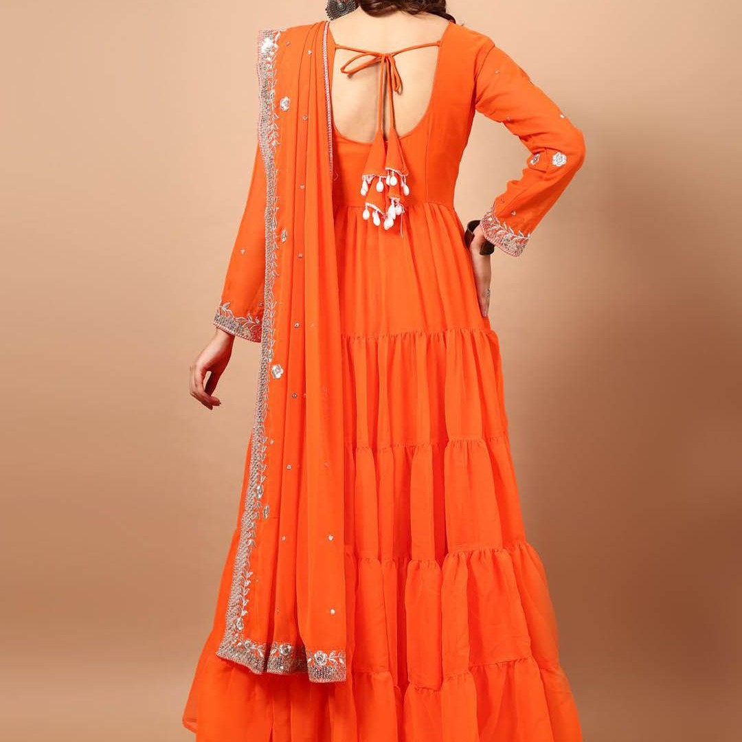 KALINI Floral Embroidered Georgette Anarkali Kurta with Pyjama & With Dupatta
