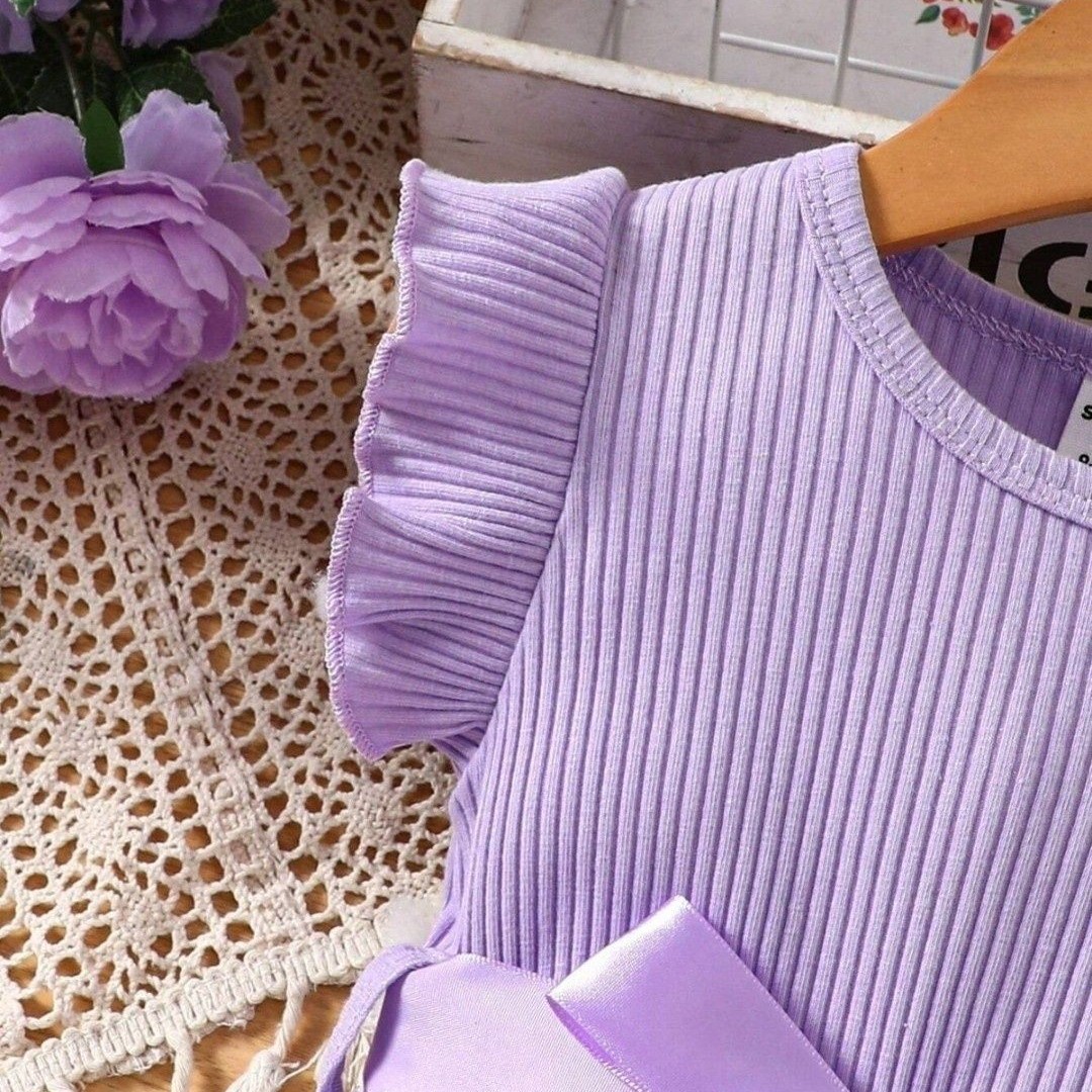 Miss & Chief Girls Printed Flutter Sleeves Fit & Flare Dress With Bow