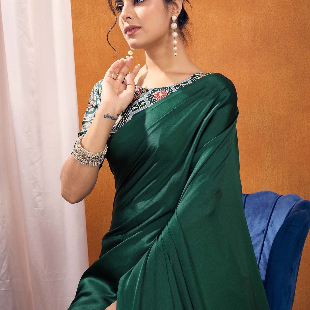 Mitera modal Ajrak Block Satin SareeWith Blouse Piece