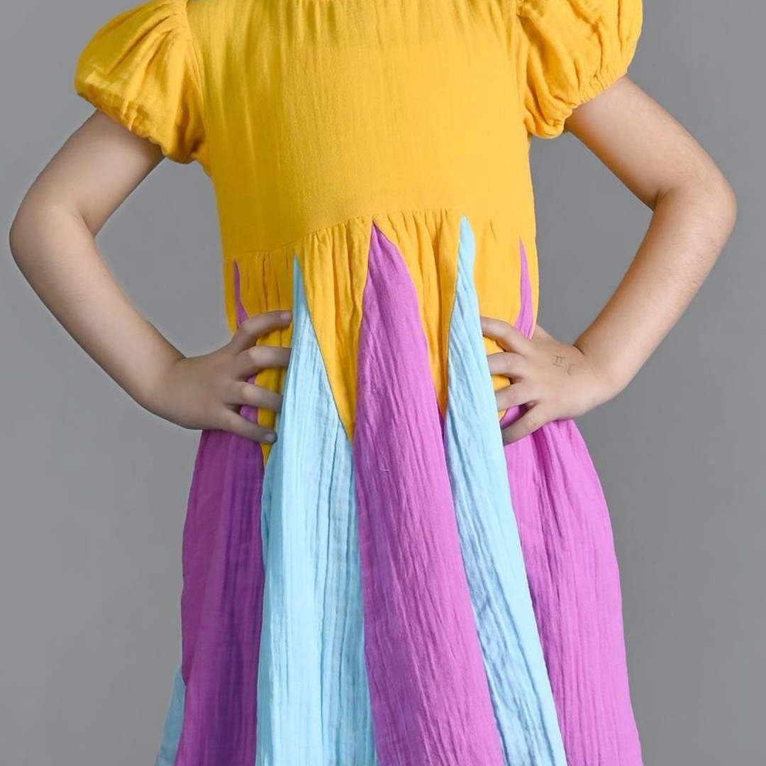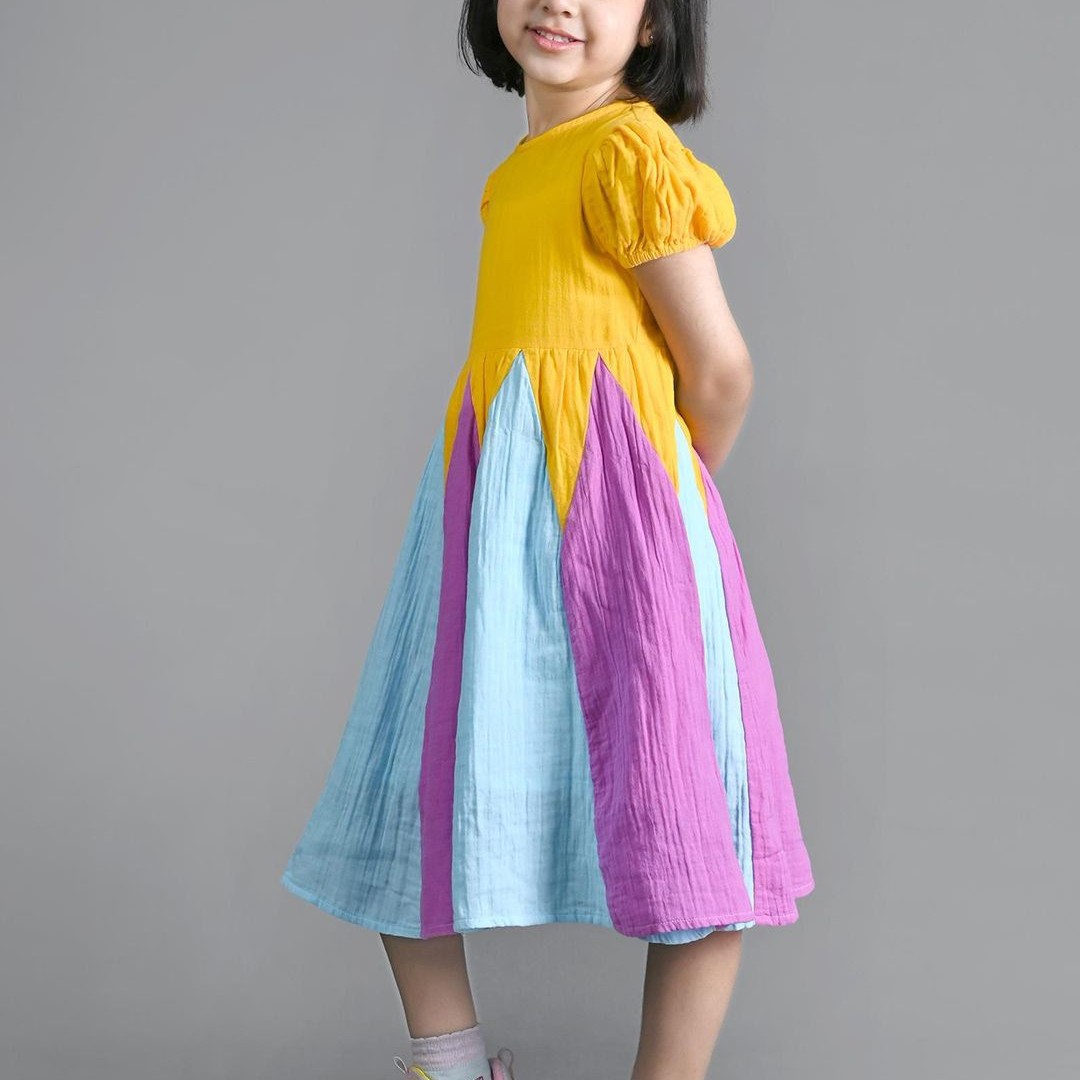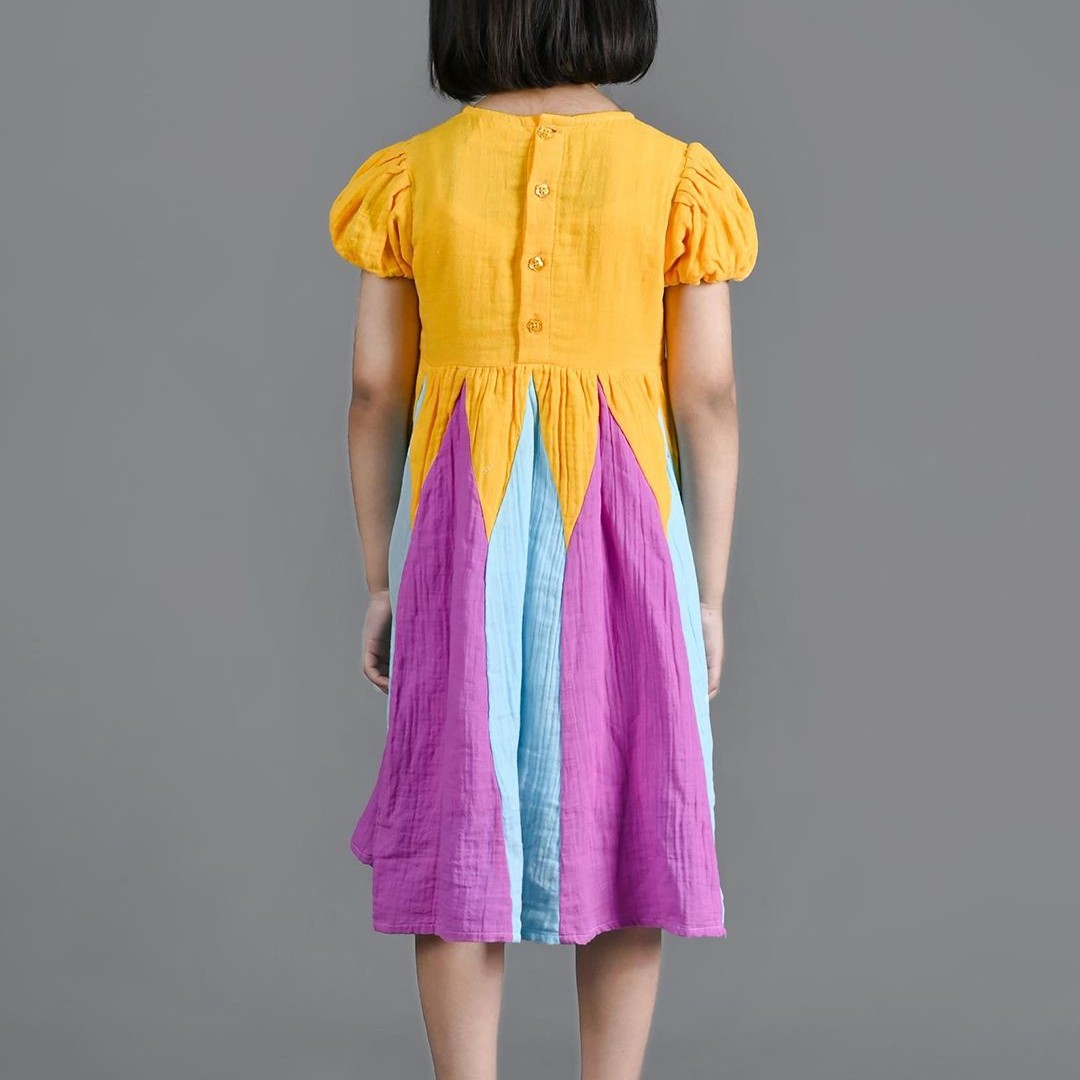 Nature Nook Kids Girls Colourblocked Puff Sleeve Fit & Flare Dress