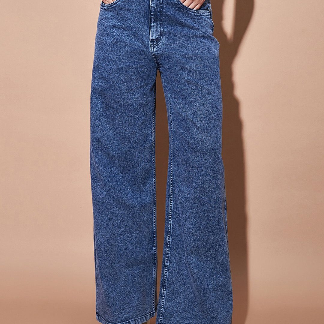 SASSAFRAS BASICS Women Straight Fit High-Rise Clean Look Heavy Fade Jeans