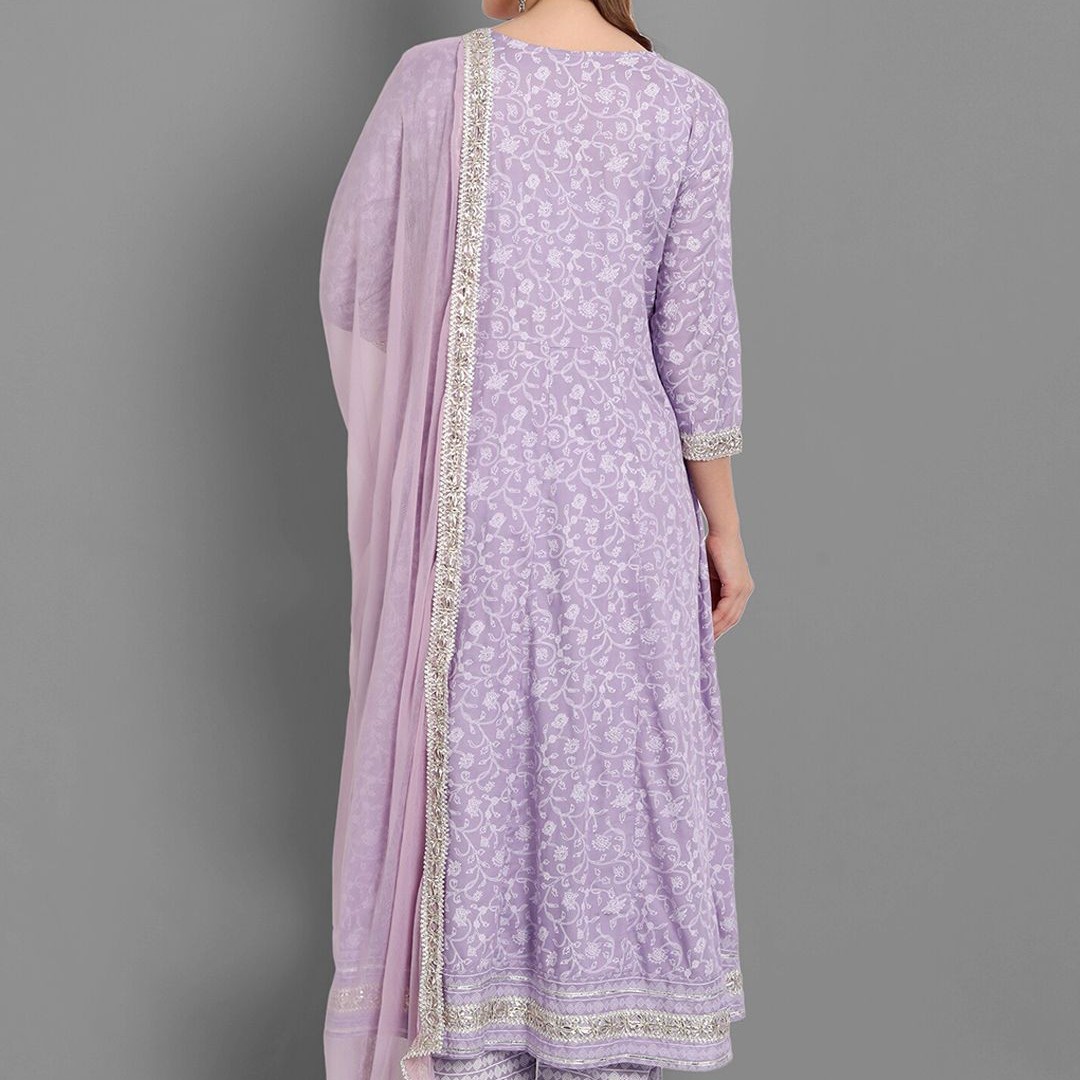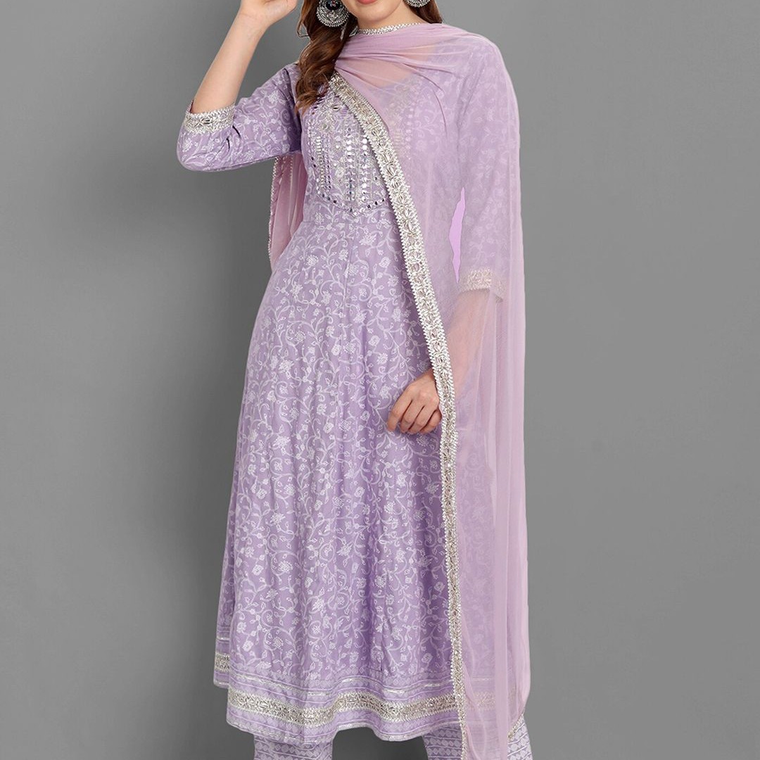 SINGNI Women Purple Ethnic Motifs Embroidered Mirror Work Kurta with Trousers & Dupatta