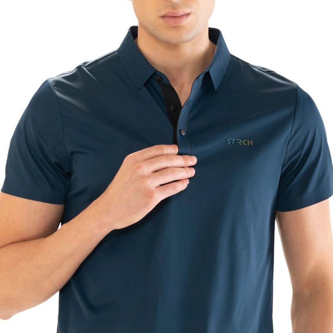 STRCH Men Anti Odour Solid Polo Collar T-shirt