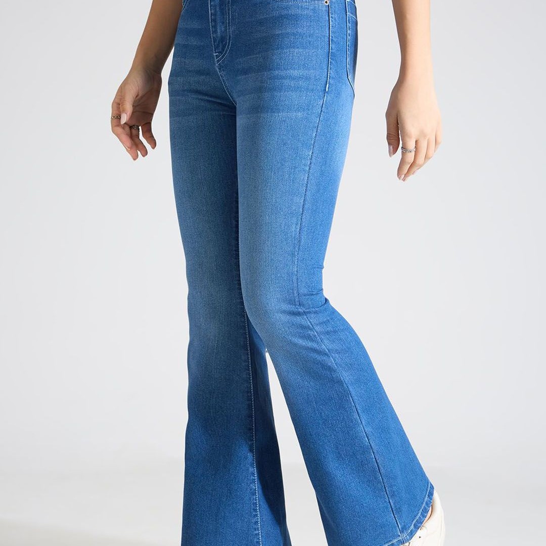 TARAMA Women Flared High Rise Clean Look Light Fade Stretchable Jeans