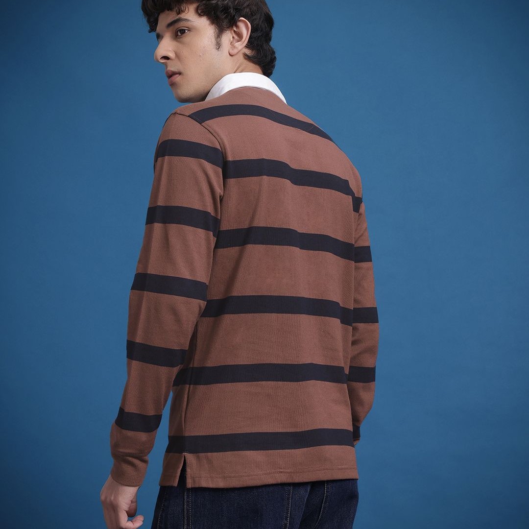 The Roadster Lifestyle Co. Men Striped Polo Collar Pure Cotton T-shirt