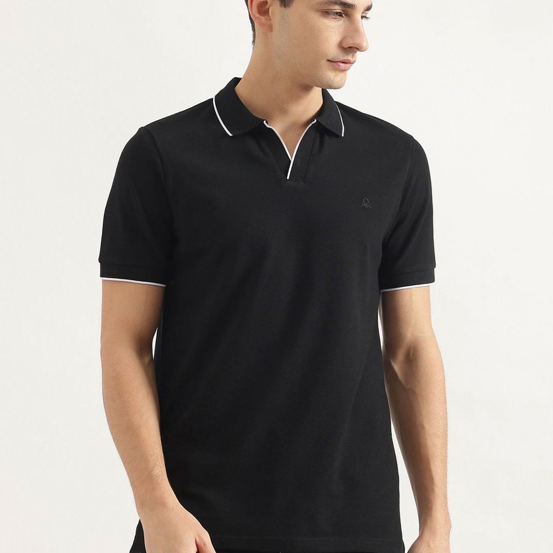 United Colors of Benetton Men Solid Polo Collar Cotton T-shirt